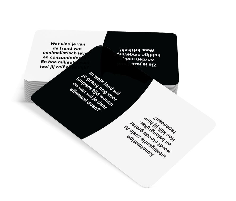 Speel dit spel met je vrienden, familie, je geliefde of collega's en leer je gesprekspartners beter kennen! Net als in het YouTube format zijn het totaal verschillende vragen. Soms gaan ze diep, soms is het grappig en soms wordt het misschien een tikkie ongemakkelijk. Durf jij Open Kaart te spelen en je bloot te geven?